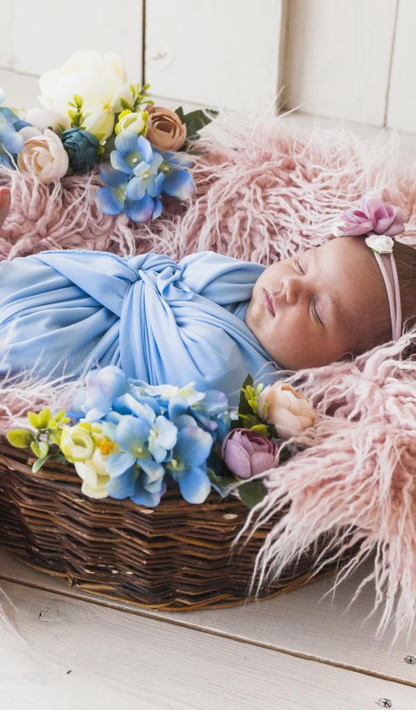 Обои Маленький грудной ребенок спит в плетеной корзине