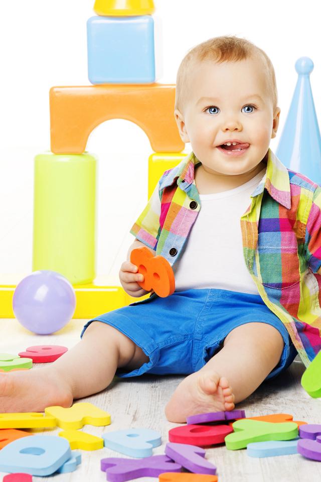 Обои Маленький мальчик играет с разноцветными игрушками