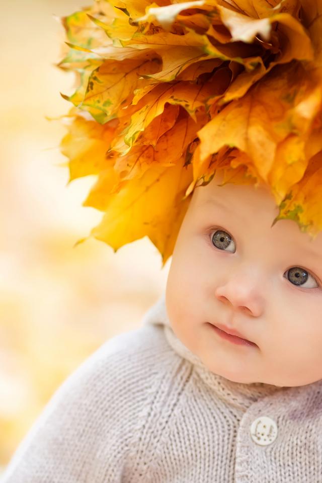 Обои Маленький милый ребенок с венком из желтых листьев на голове