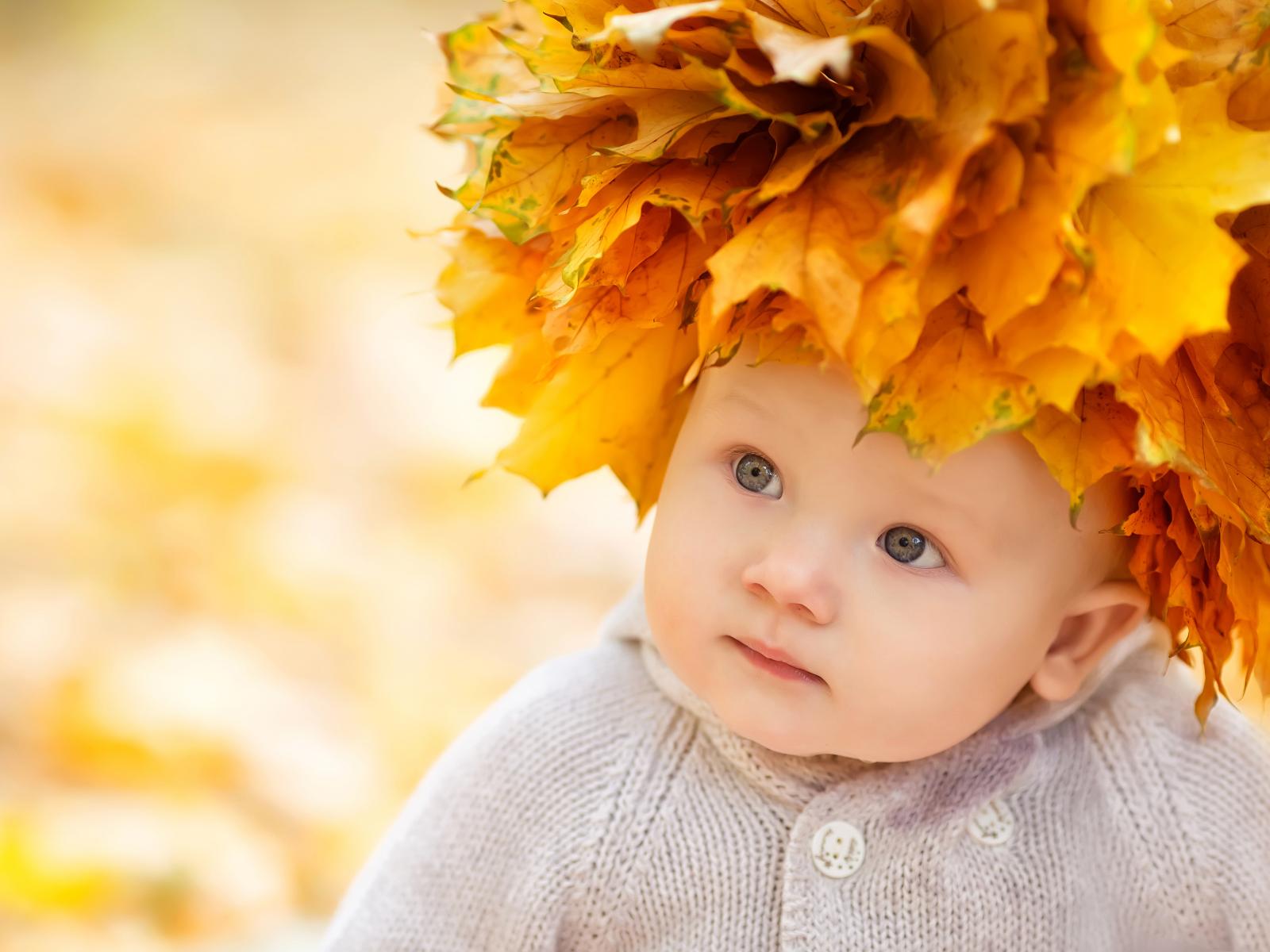 Обои Маленький милый ребенок с венком из желтых листьев на голове