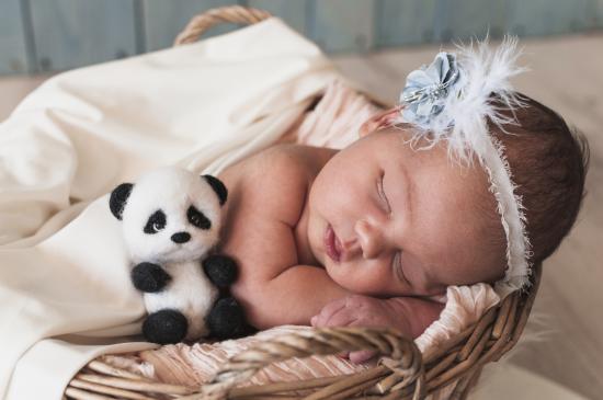 Обои Маленькая спящая девочка с игрушечной пандой