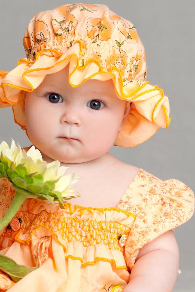 Обои Маленькая девочка в красивом наряде с цветком