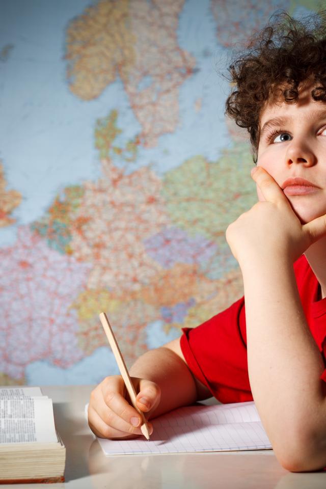 Обои Мальчик ученик делает уроки за столом