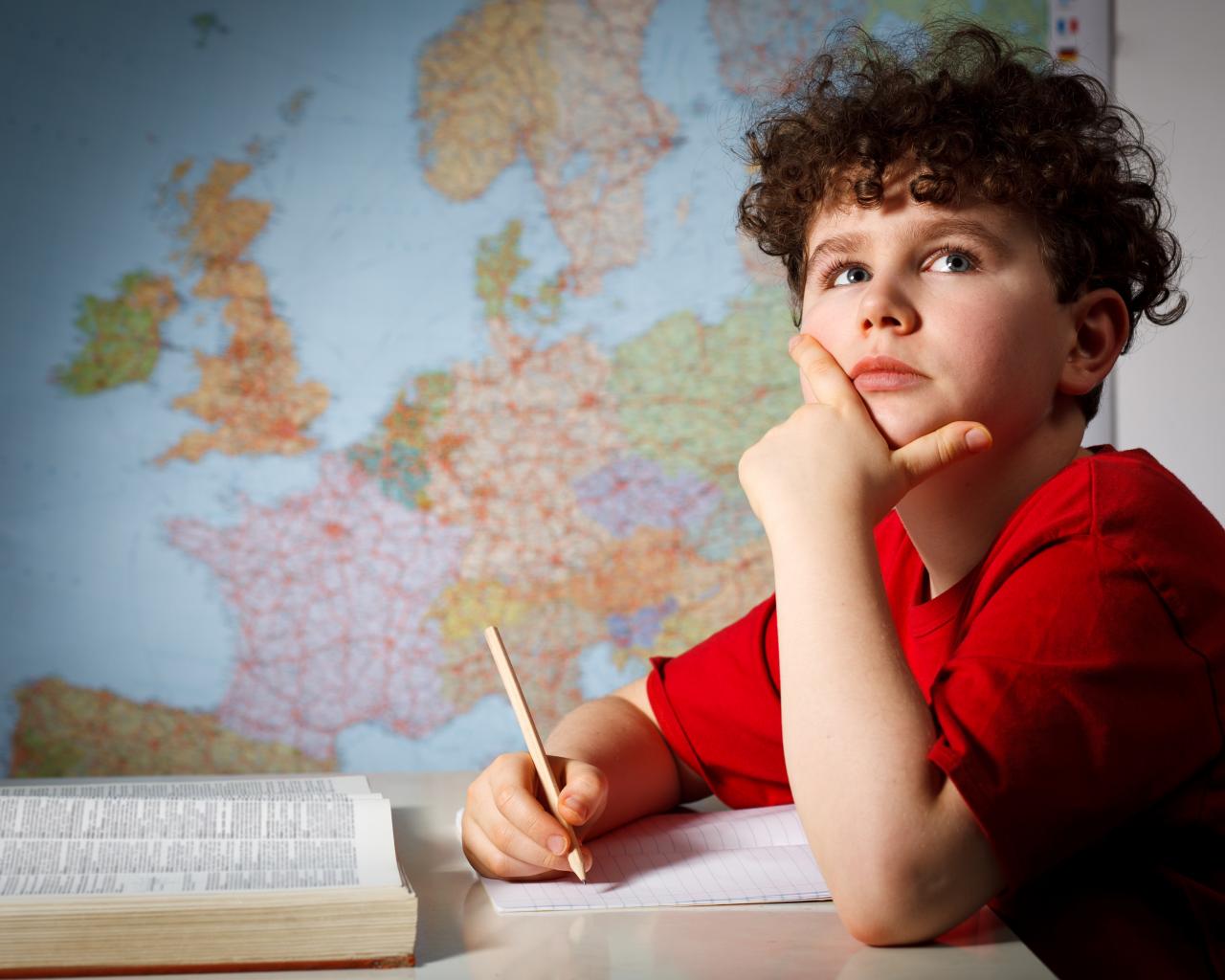 Обои Мальчик ученик делает уроки за столом