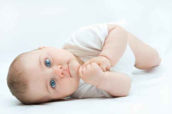 Обои Забавный голубоглазый малыш на белом фоне