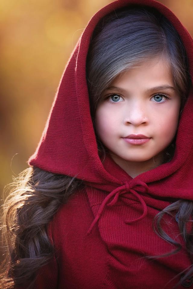 Обои Маленькая красивая голубоглазая девочка с красным капюшоном на голове