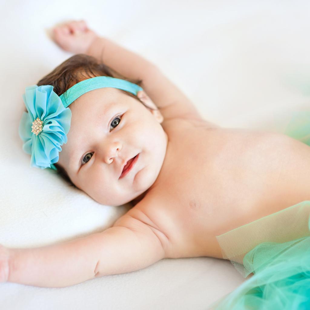 Обои Милая маленькая девочка с повязкой с голубым цветком
