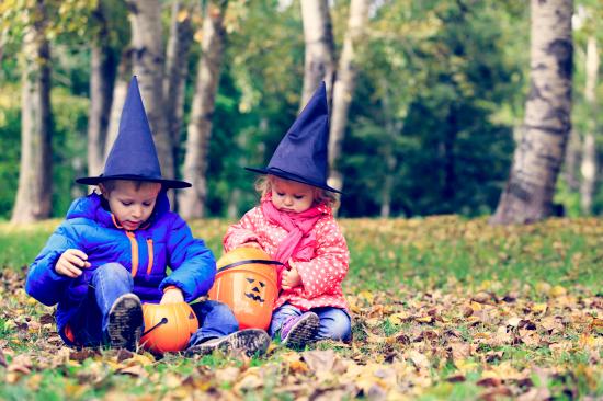 Обои Маленькие мальчик и девочка в лесу на Хэллоуин