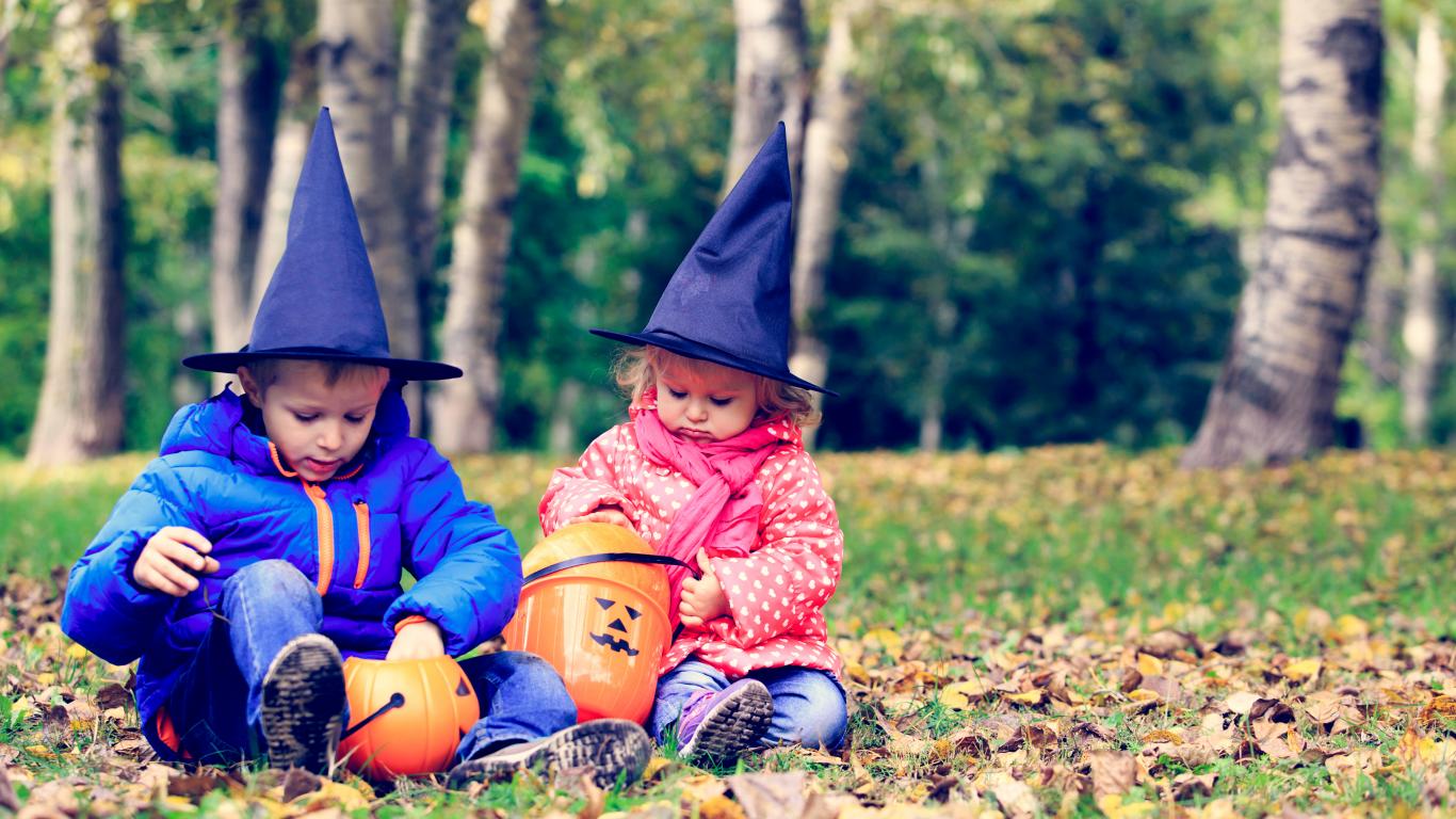 Обои Маленькие мальчик и девочка в лесу на Хэллоуин
