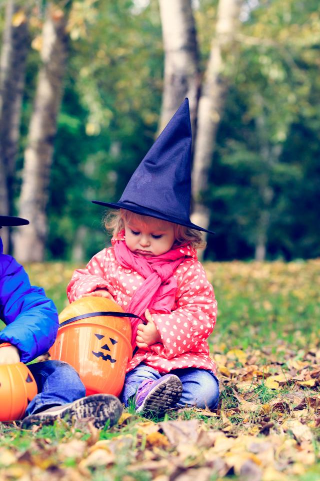 Обои Маленькие мальчик и девочка в лесу на Хэллоуин