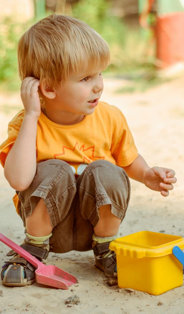 Обои Маленький мальчик играет на песке