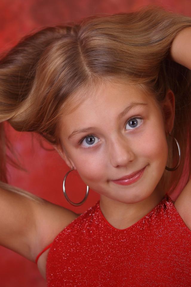 Обои Красивая маленькая девочка с руками в волосах