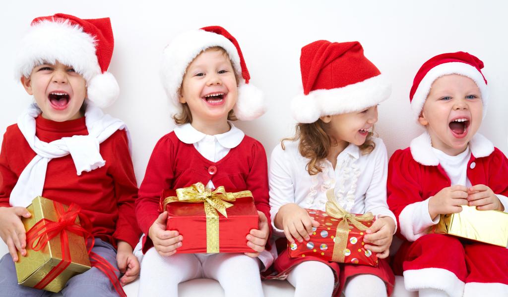 Обои Улыбающиеся дети с подарками на новый год