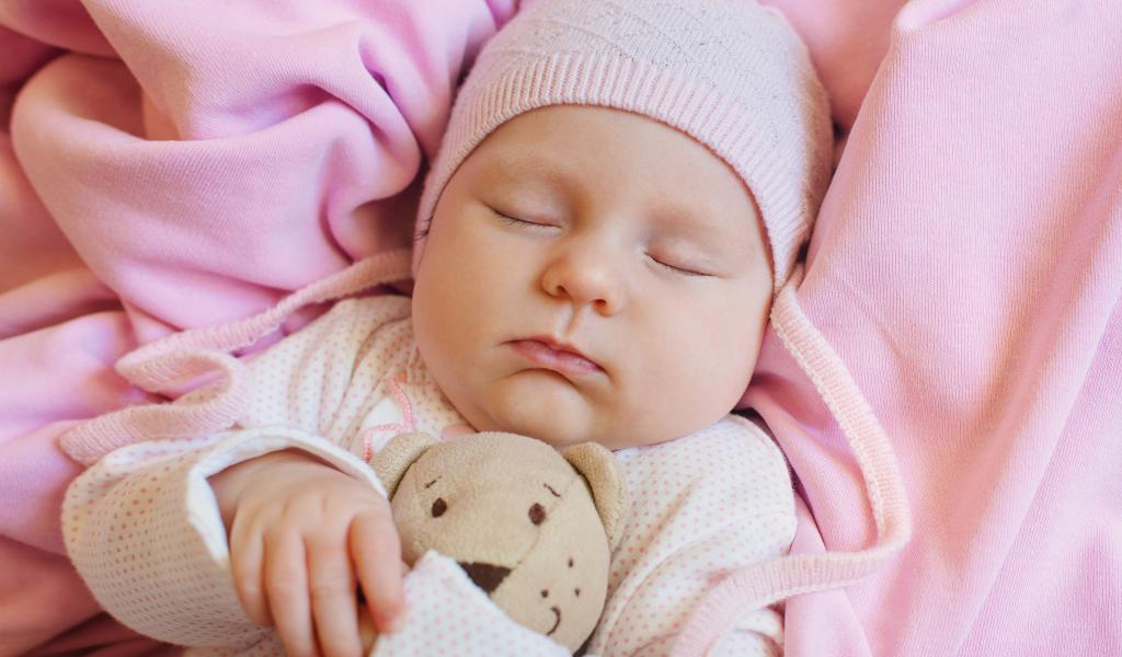 Обои Спящий ребенок обнимает любимую игрушку