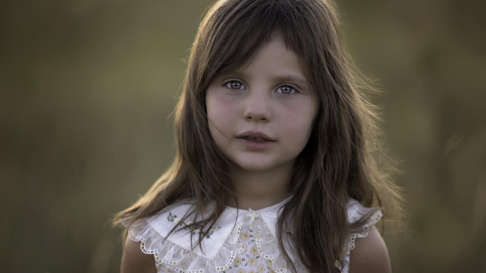 Обои Выразительный взгляд маленькой девочки с длинными волосами
