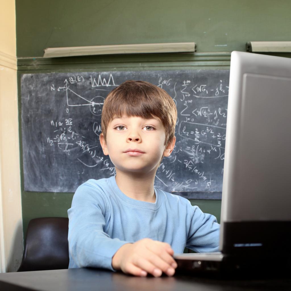 » Обои Мальчик школьник делает уроки за ноутбуком