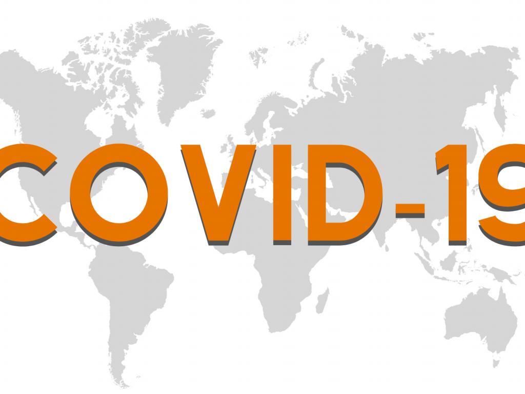Обои Надпись COVID-19 коронавирус на фиолетовом фоне
