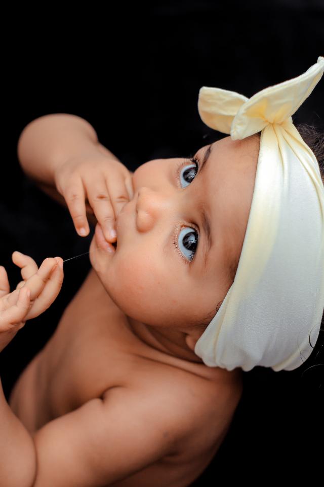 Обои Маленькая девочка с повязкой на голове на черном фоне