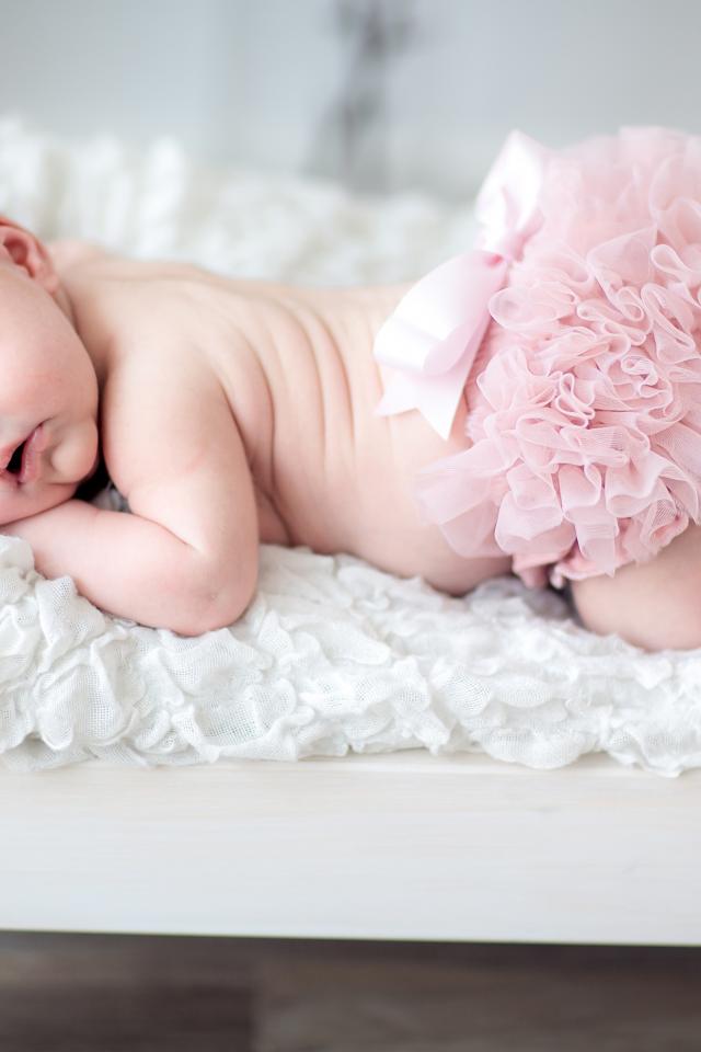 Обои Маленькая спящая девочка в розовом костюме в кроватке