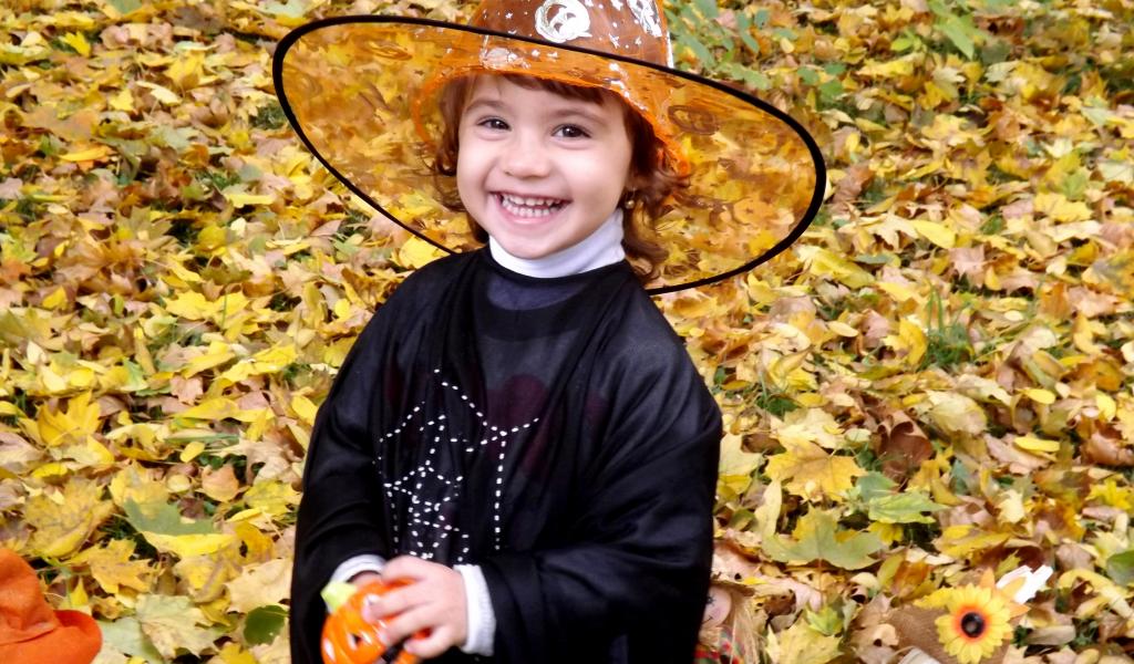 Обои Улыбающаяся девочка в костюме ведьмы на Хэллоуин