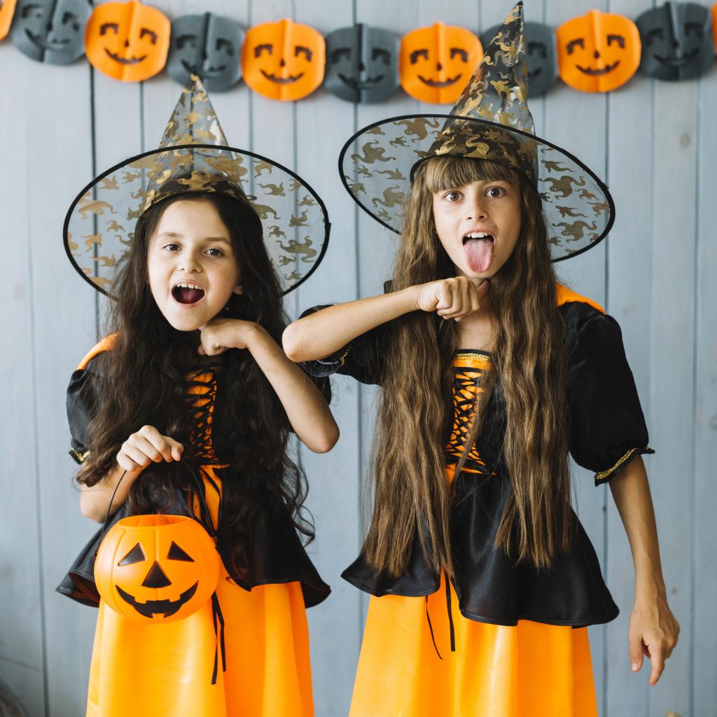 Обои Две маленькие девочки в костюмах ведьмы на Хэллоуин