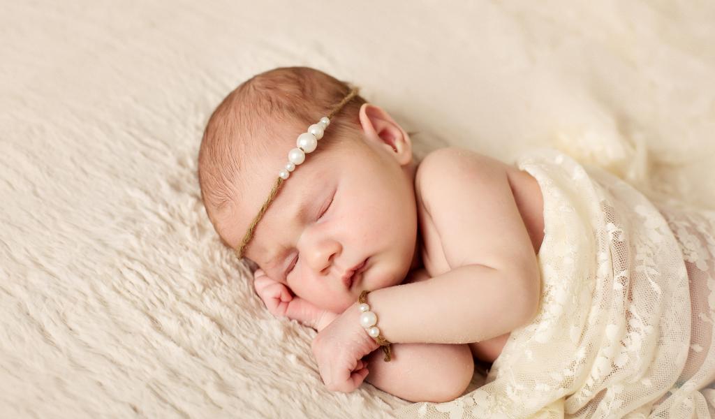Обои Спящий грудной ребенок с украшением с жемчугом на голове