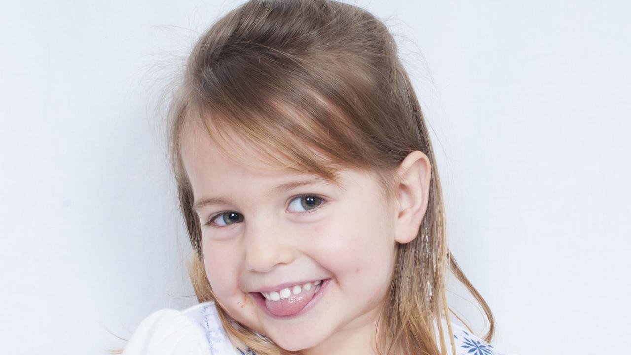 Обои Милая улыбающаяся девочка с высунутым языком
