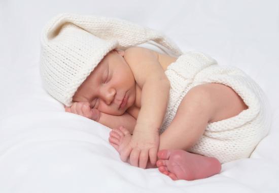 Обои Нежный новорожденный ребенок в белом костюме