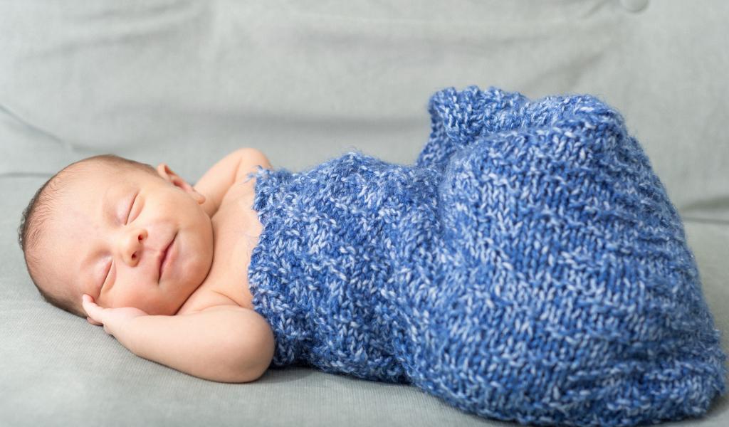 Обои Маленький грудной ребенок в синем вязаном покрывале