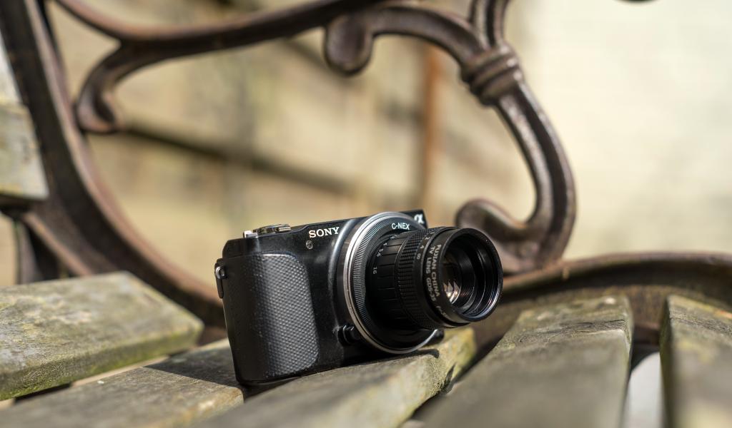 Обои Старый фотоаппарат SONY на деревянной лавке