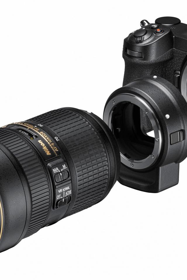 Обои Фотоаппарат Nikon Z7 с объективом на белом фоне