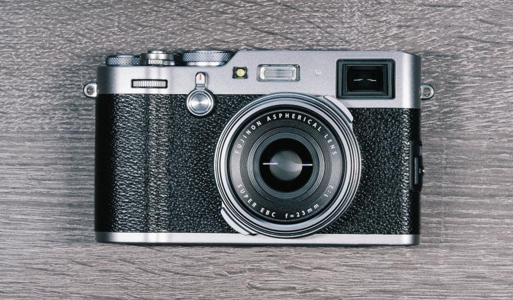 Обои Красивый фотоаппарат Fujifilm X100F на столе