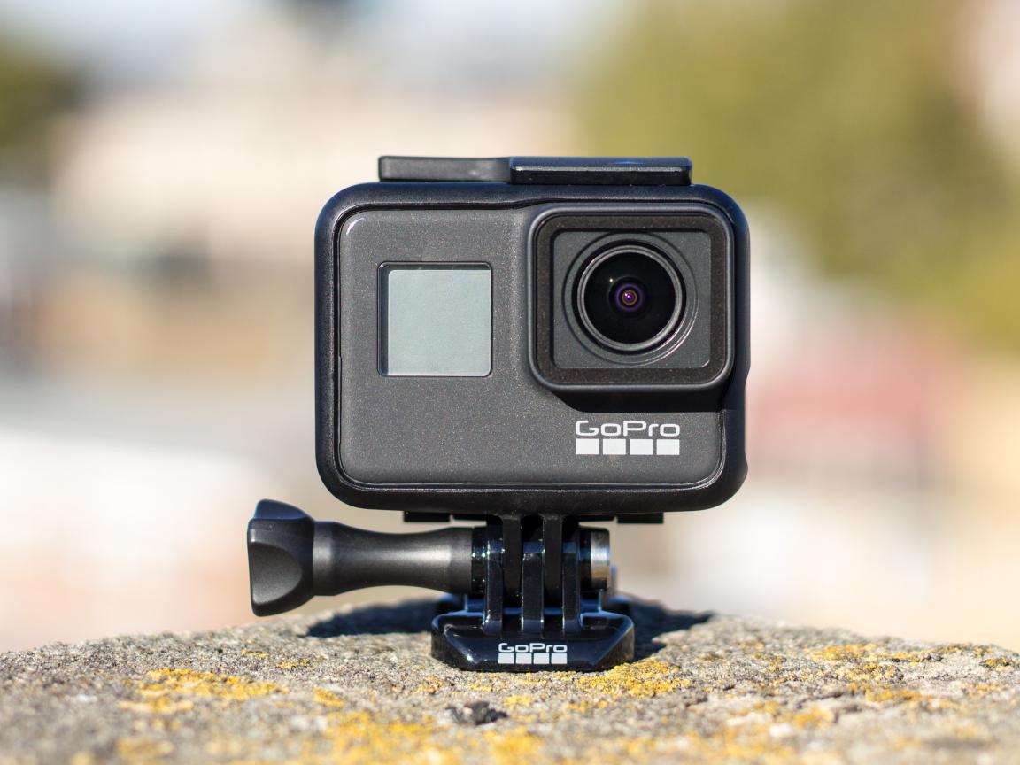 Обои Фотоаппарат GoPro Hero7 Black стоит на камне
