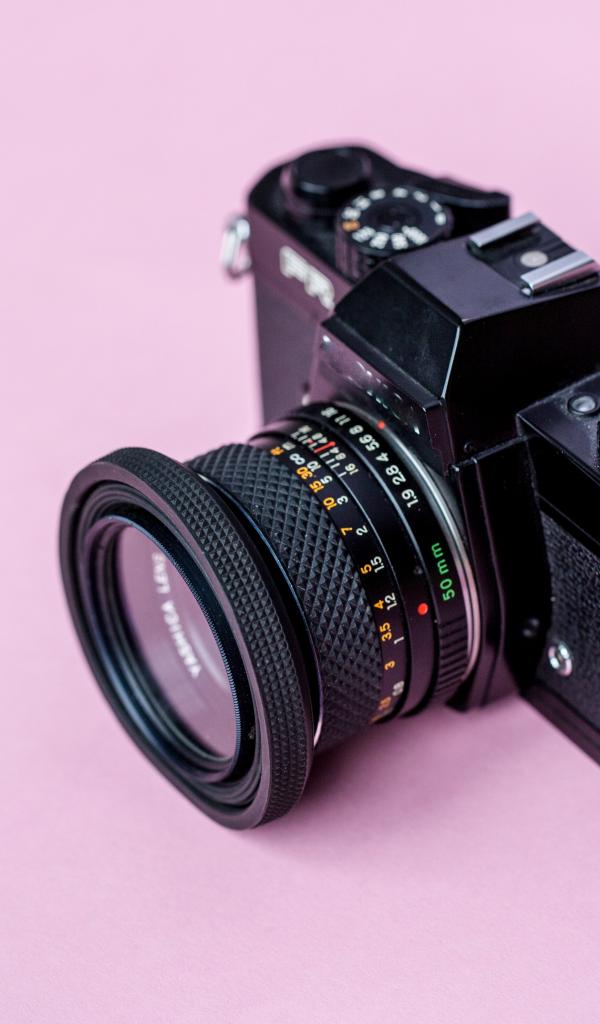 Обои Старый фотоаппарат на розовом фоне
