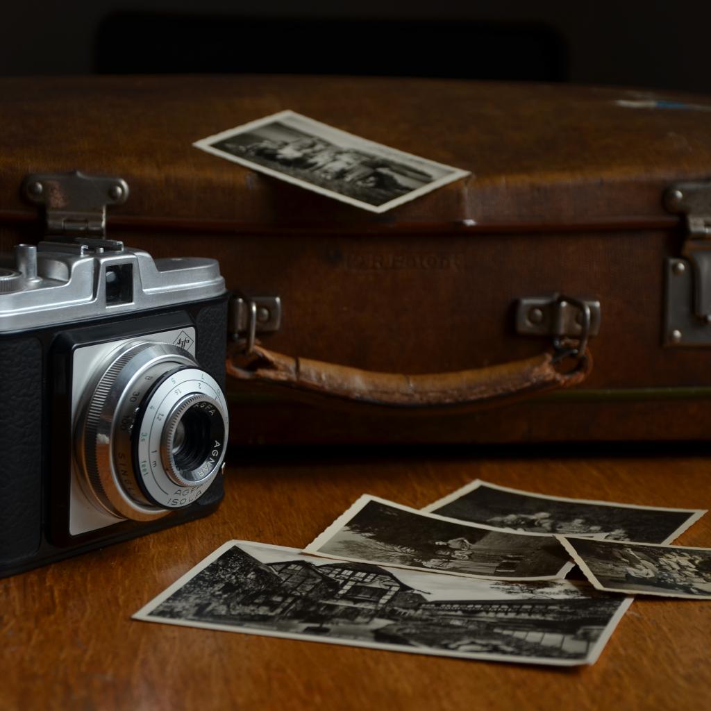 Обои Старый фотоаппарат с чемоданом и фото