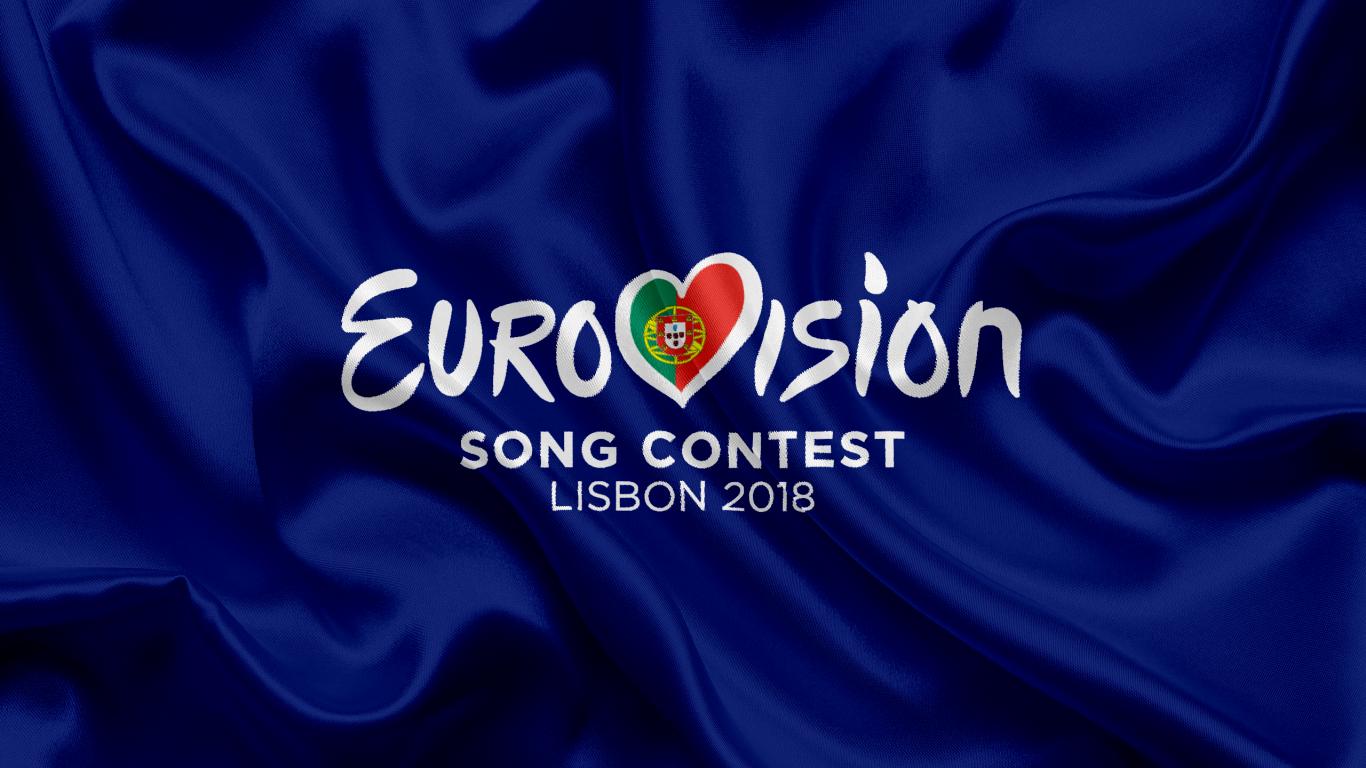 Обои Логотип Евровидение 2018 в Лиссабоне на синем фоне