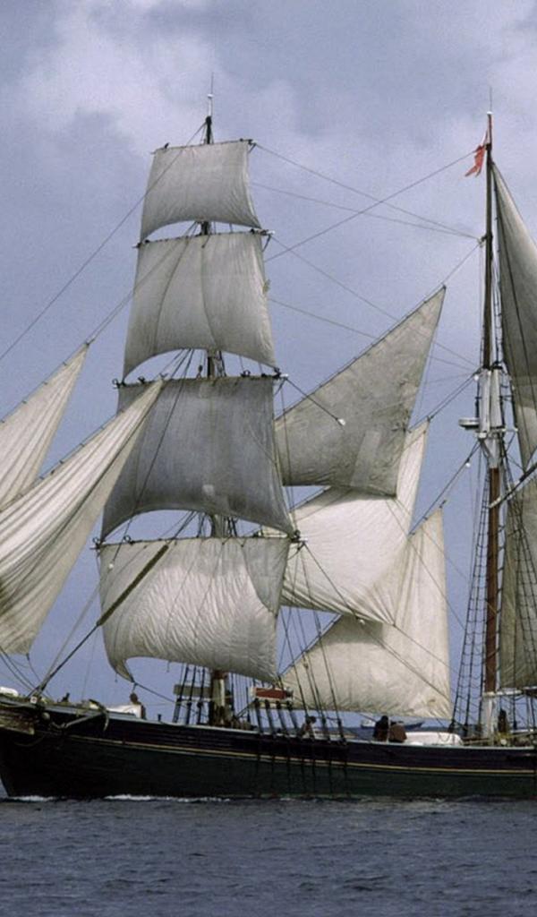 Обои Корабль с белыми парусами в море