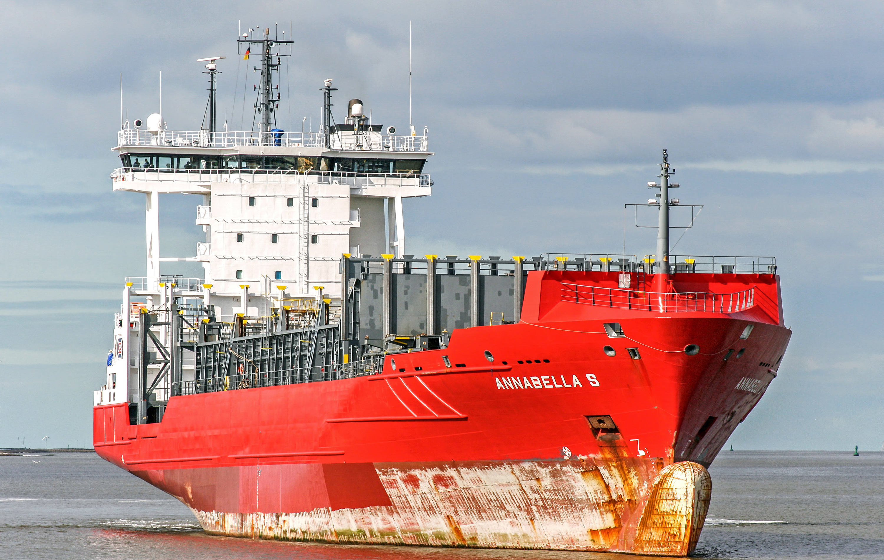 Обои Большой красный контейнеровоз Annabella S на фоне