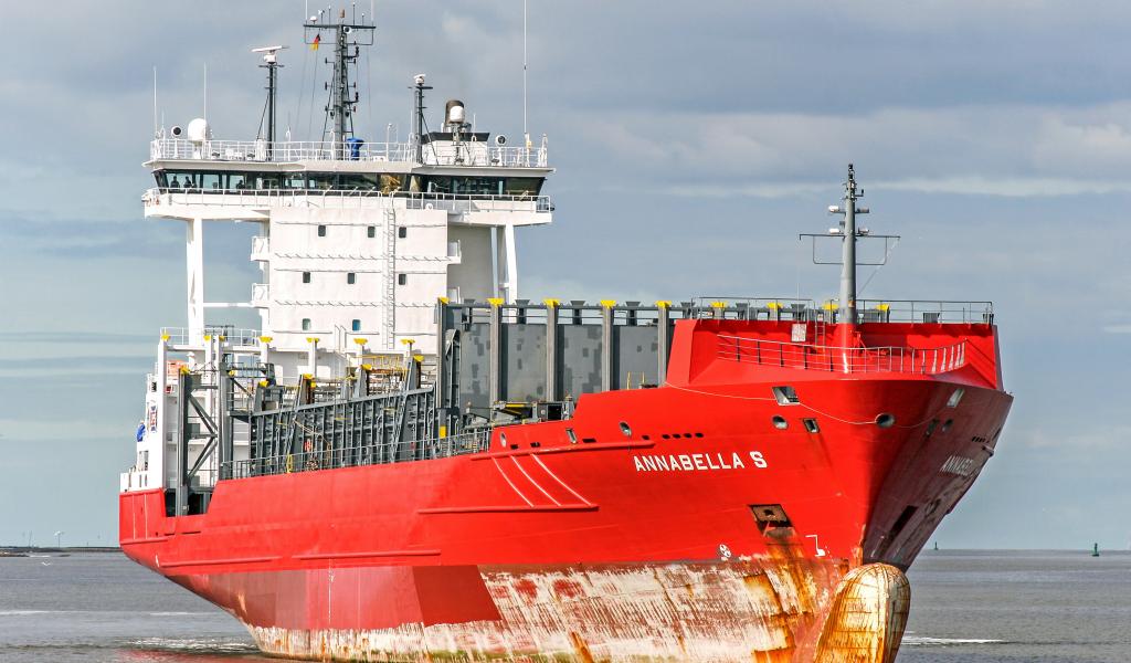 Обои Большой красный контейнеровоз Annabella S на фоне