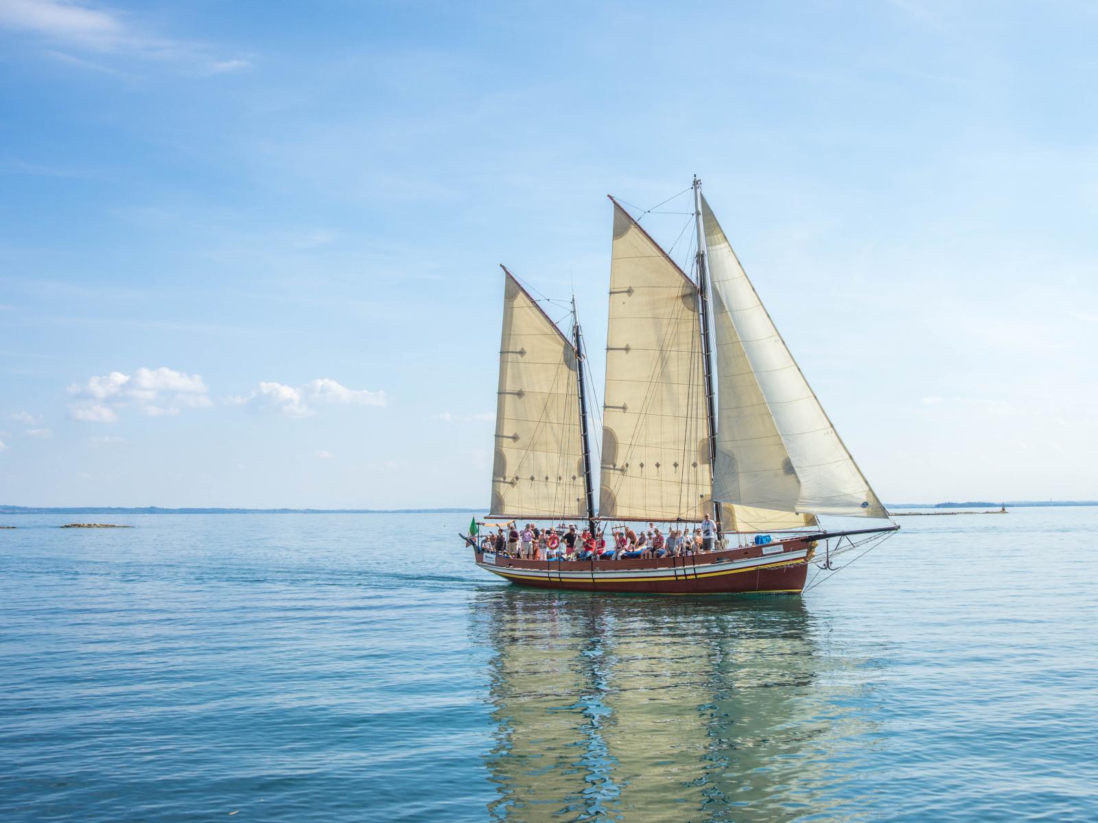 Обои Судно с белыми парусами в море на фоне голубого неба
