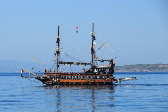 Обои Большой красивый пиратский корабль в море