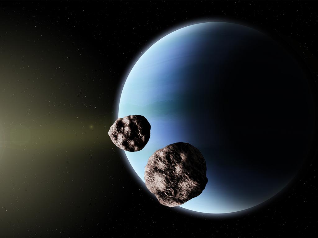 Обои Полет астероидов рядом с планетой Нептун