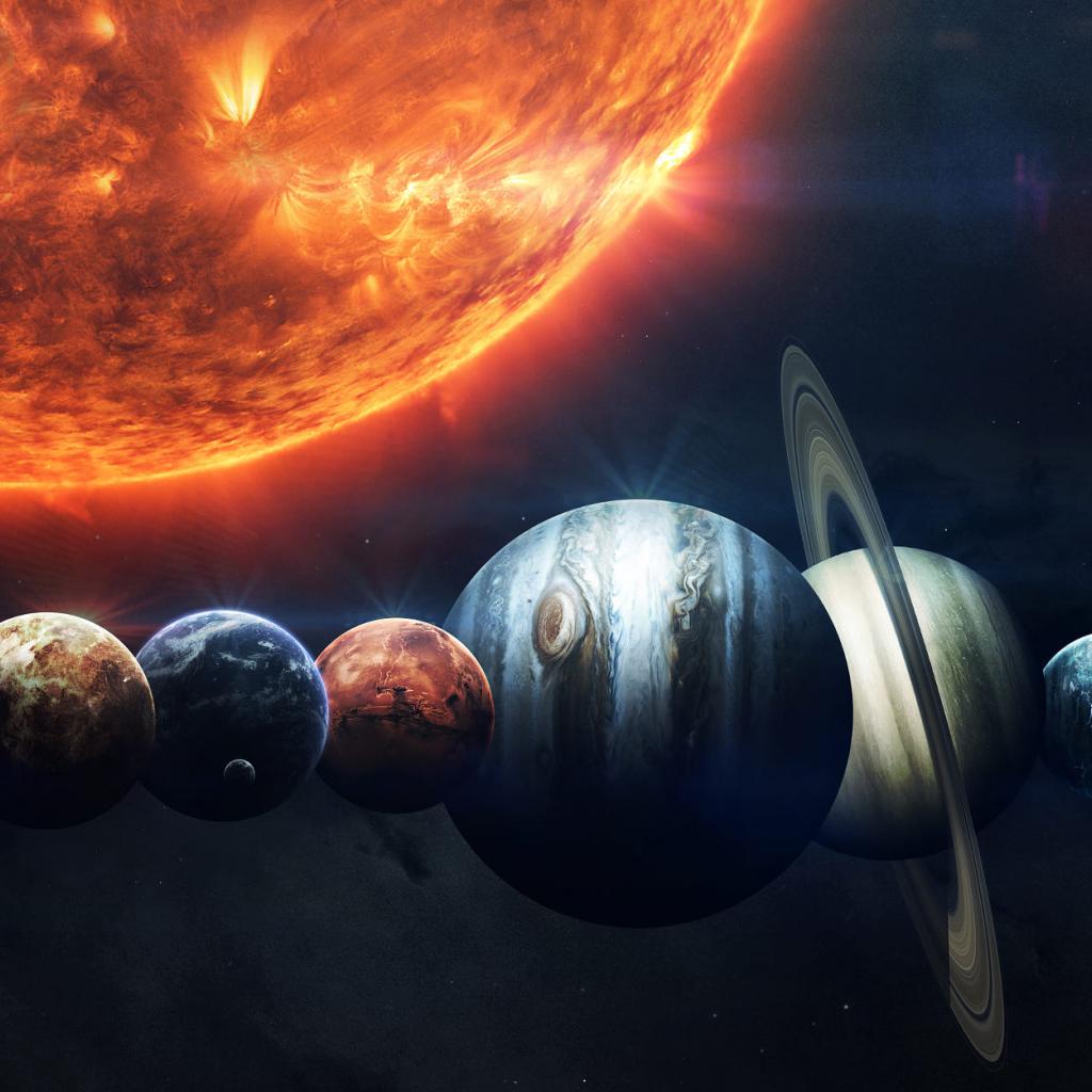 Обои Планеты солнечной системы выстроились в ряд рядом с солнцем