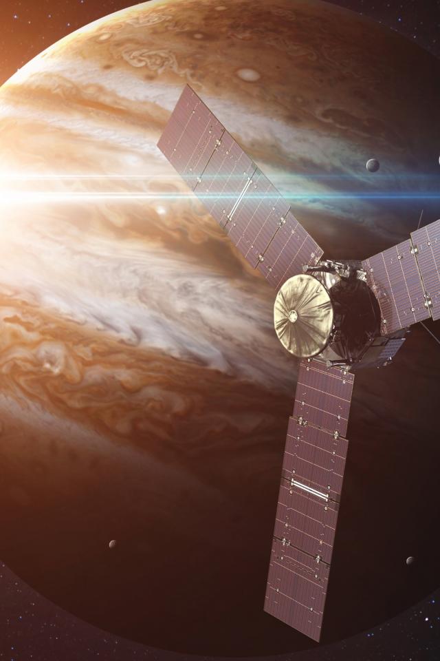 Обои Межпланетная станция Юнона на фоне планеты Юпитер