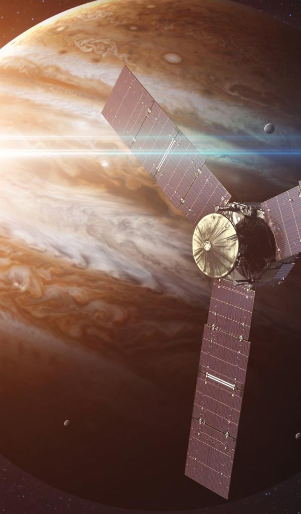 Обои Межпланетная станция Юнона на фоне планеты Юпитер