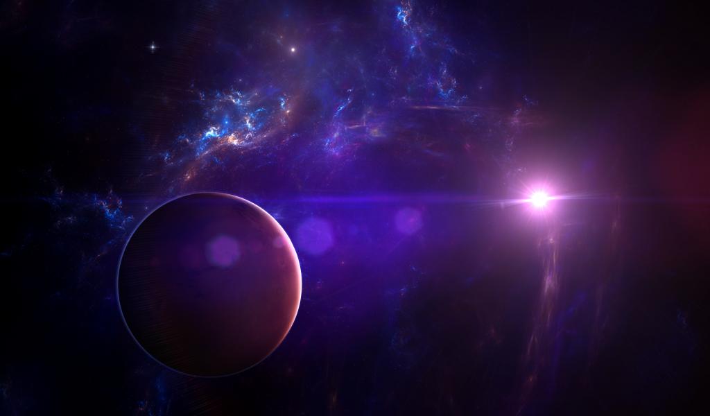 Обои Планета в голубой звездной галактике