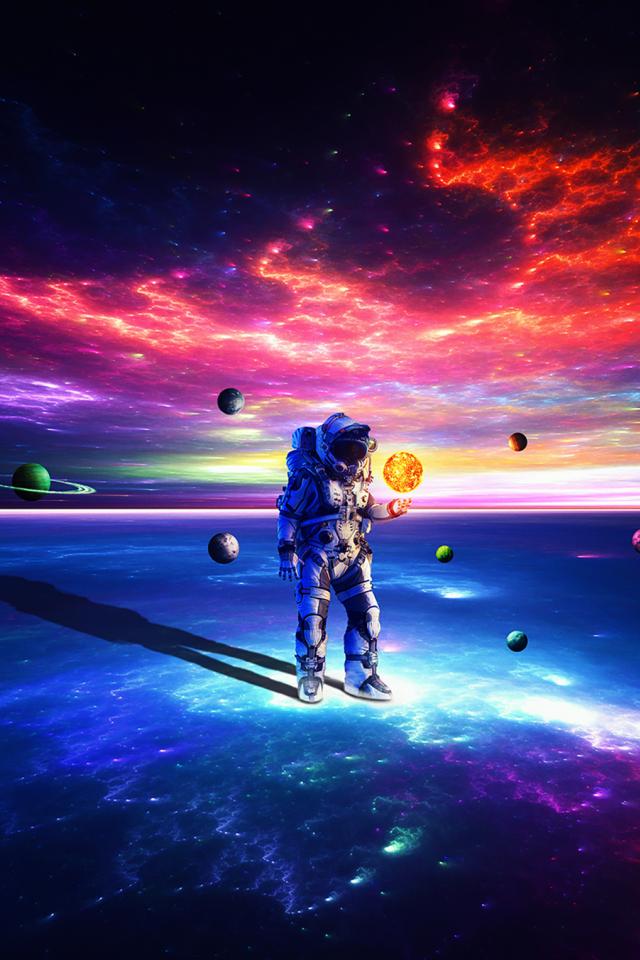 Обои Астронавт на поверхности земли с планетами