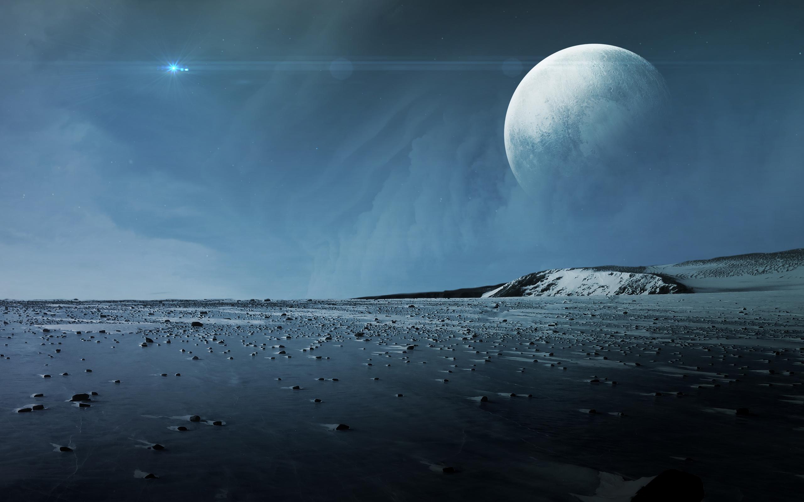 Обои Вид на большую белую луну с поверхности планеты