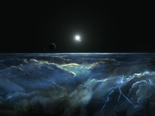 Обои Штормовое небо с молнией вид с космоса