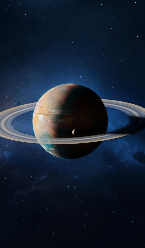 Обои Большая планета Сатурн в голубом космосе